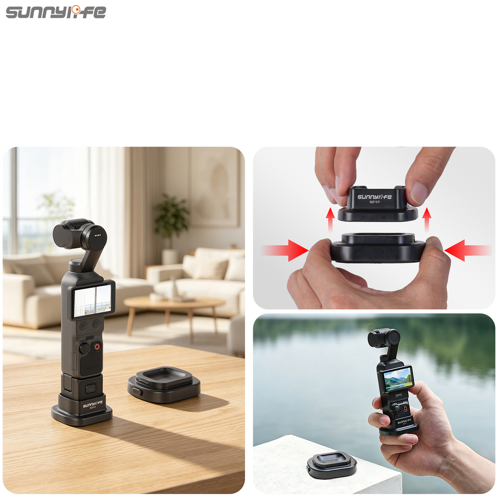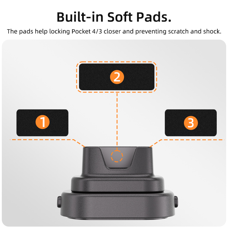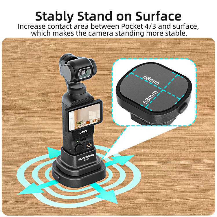 - Stably Stand on Surface. Increase contact area between Pocket 4/3 and surface, which makes the camera standing more stable.