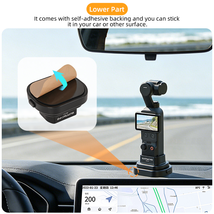 - Detachable Design. The bottom part can be detached to meet your diverse shooting needs. The upper part can be stable desktop stand for Pocket 4/3, and the lower part comes with self-adhesive backing and you can stick it in your car or other surface.