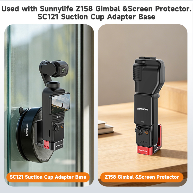 - Used with Sunnylife Z158 gimbal & screen protector and SC121 suction cup adapter base.