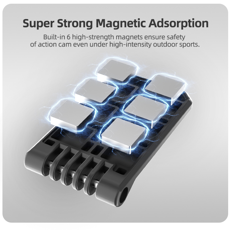 - Super Strong Magnetic Adsorption. Built-in 6 high-strength magnets ensure safety of action cam even under high-intensity outdoor sports.